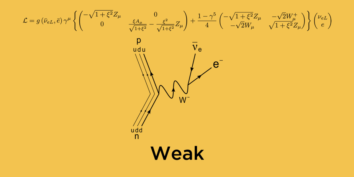 With the development of quantum electrodynamics for electromagnetism, and quantum chromodynamics for the strong interaction, we had an approach to consider. In both of these models there are charges (electric and color) with field quanta mediating their interactions (photons and gluons respectively). Even gravity can be approximated as mass “charges” interacting through gravitons. So what if quarks, leptons and neutrinos have a kind of “weak” charge that acts through a field quanta. This idea turns out to be right, but the details are complicated.