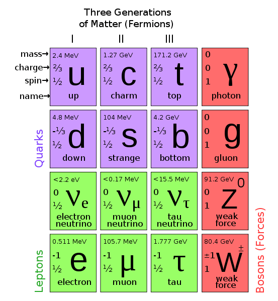 Since the neutrino was chargeless (and presumed massless) it is tempting to imagine neutrinos playing a role in the weak interaction just as photons do in electromagnetism. It was soon clear that this wouldn’t work. As particle physics began to find a wide range of particles, their radioactive byproducts didn’t follow relations that neutrino mediated decay could explain. When the quark model was proposed, we found that rather than three elementary particles (electrons, protons, and neutrons), there were in fact twelve. These could be grouped into six quarks (up, down, charm, strange, top, and bottom), and six leptons (electron, muon, tau, and their corresponding neutrinos). Whatever this weak interaction was, it could cause heavier quarks to decay into lighter ones, and heavier leptons decay into lighter ones.